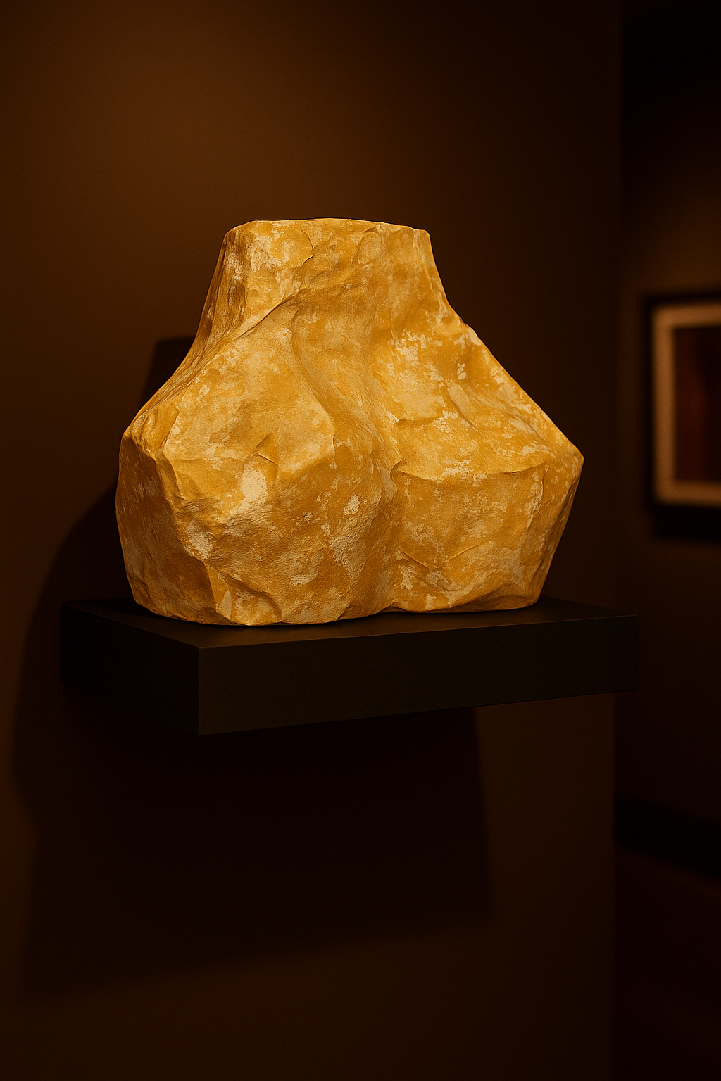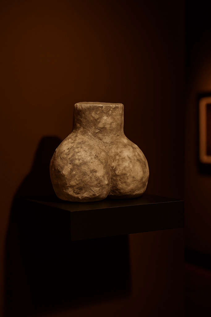 Les sculptures incarnent un langage des formes. Le plâtre, ponctué de motifs géométriques, de dorures, et d’effervescents devient une peau nouvelle, fragile et sensuelle. Chaque pièce est pensée comme une oeuvre d’art décorative mais aussi comme un miroir intime du désir et de douceur.